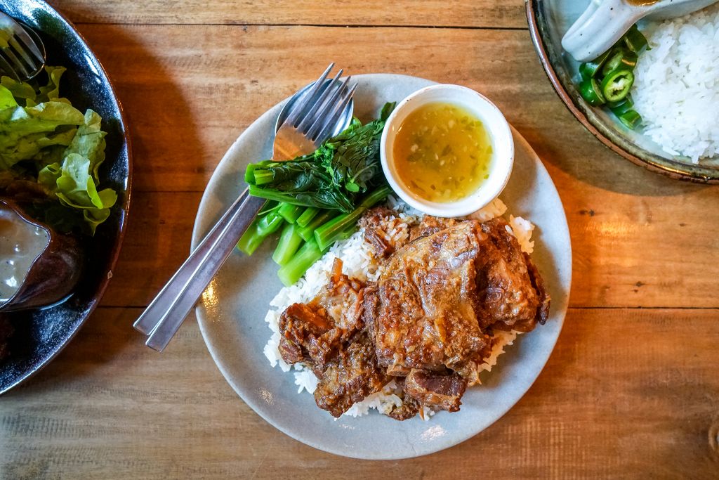 เมนูมีทั้งคาวหวานและเครื่องดื่ม อาหารคาวจะนำอาหารไทยมาประยุกต์ให้ดูทันสมัยและกินง่ายขึ้น อย่างเช่นเมนูข้าวซี่โครงหมูอบยอดคะน้าฮ่องกง เนื้อซี่โครงนุ่ม คะน้าหวานกรอบ อร่อยกลมกล่อม