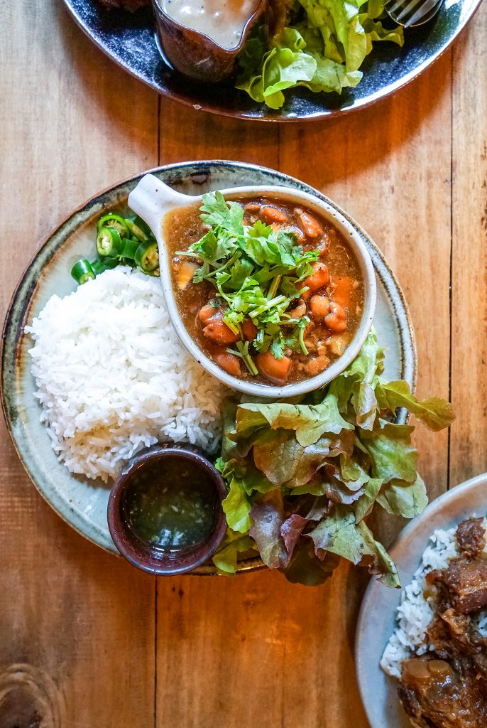 ทั้งบรรยากาศของร้านก็ผสมผสานสถาปัตยกรรมตึกสมัยรัชกาลที่ 5 กับการตกแต่งแบบอินดัสเตรียลด้วย เป็นความร่วมสมัย ความเท่ ความอบอุ่นเป็นกันเอง ในที่ที่เดียว