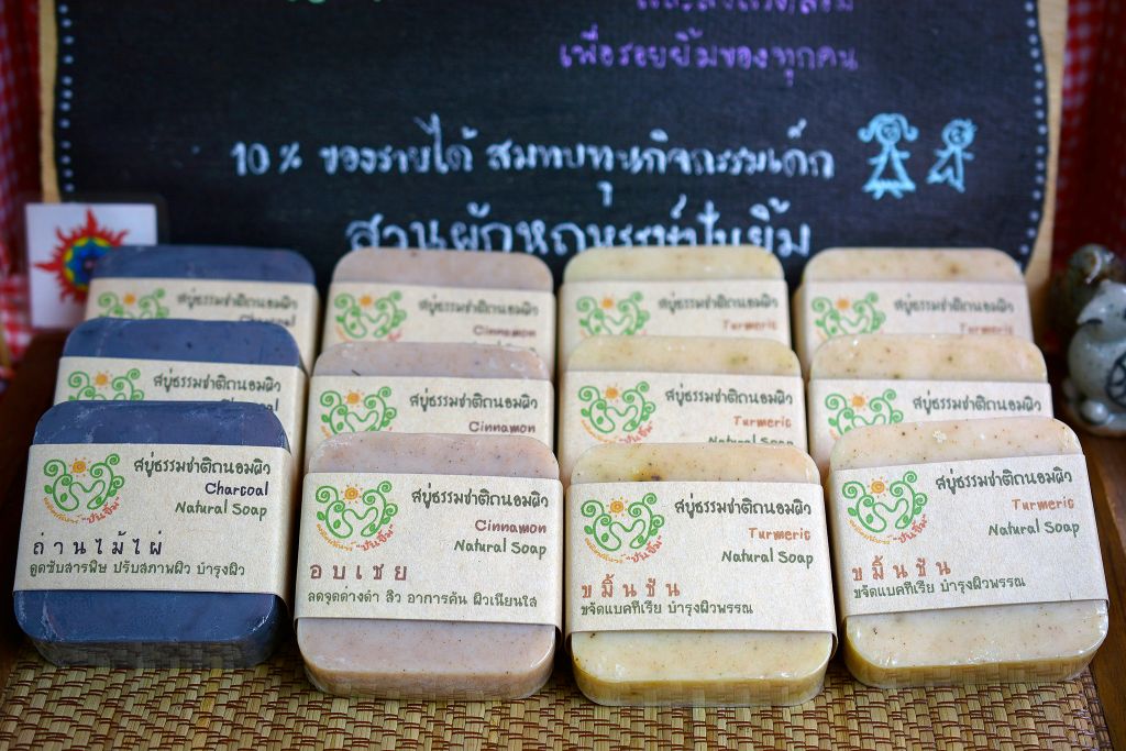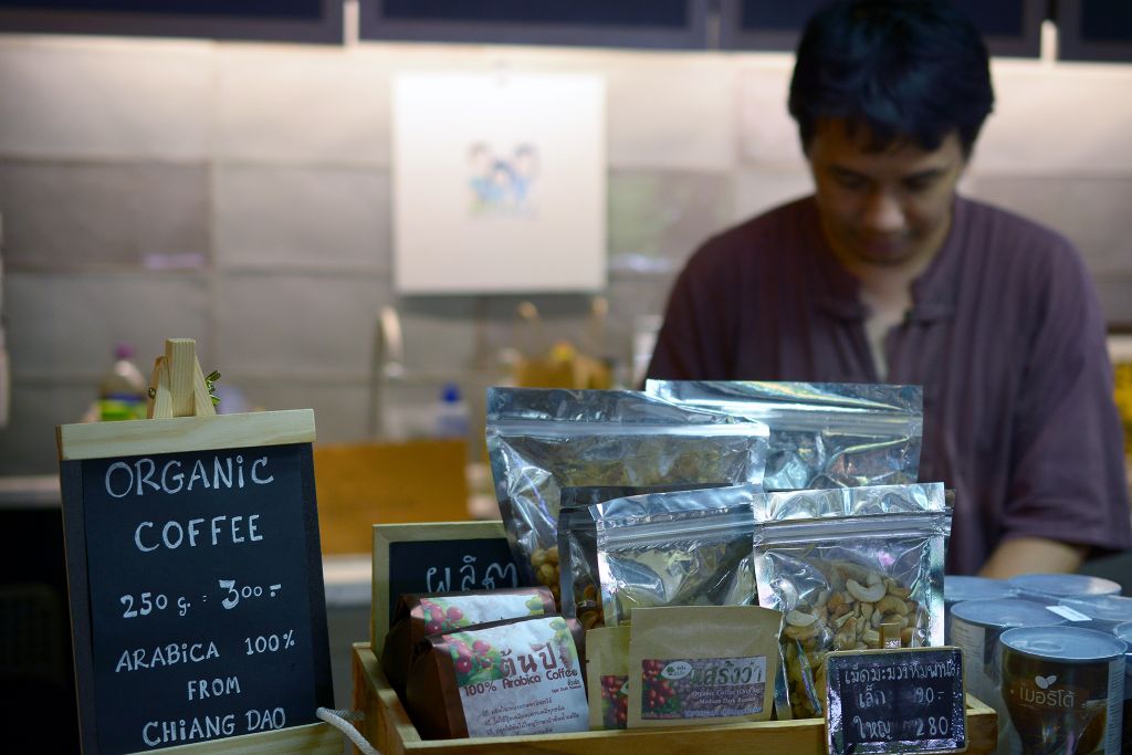 ส่วนผลิตภัณฑ์ปันกันอยู่ก็ล้วนแต่น่าใช้ เช่น ยาหม่องสมุนไพรจากชีวาเฮิร์บ สบู่ธรรมชาติถนอมผิวจากสวนผักหฤหรรษ์ปันยิ้ม เครื่องเงินงามๆ จากเสน่ห์ชาวปกากะญอ หนังสือทางเลือกน่าอ่านจาก Vision Book
