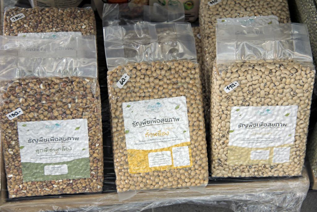 สินค้าเด่นอย่างหนึ่งของร้าน คือถั่ว 5 สี ประกอบด้วยถั่วดำ ถั่วแดง ถั่วเขียว ถั่วเหลือง และชิกพีหรือถั่วขาว บรรจุสลับกันในขวดโหลแก้วใสวางเรียงอย่างสวยงามบนชั้นที่มุมหนึ่งของร้าน มดตั้งใจจำหน่ายถั่วที่มีประโยชน์ต่อสุขภาพนี้ในแบบรีฟิลล์ คือลูกค้าสามารถนำขวดหรือภาชนะอื่นมาเติมถั่วซื้อกลับบ้านได้