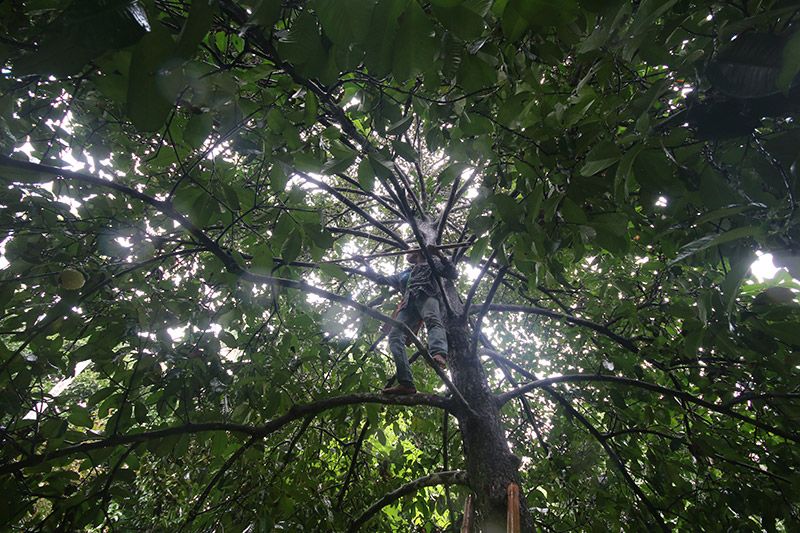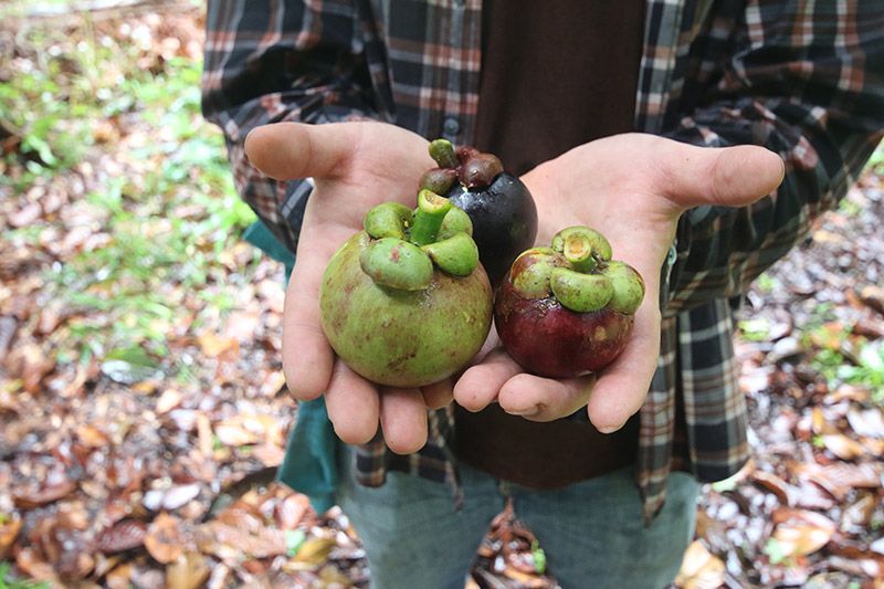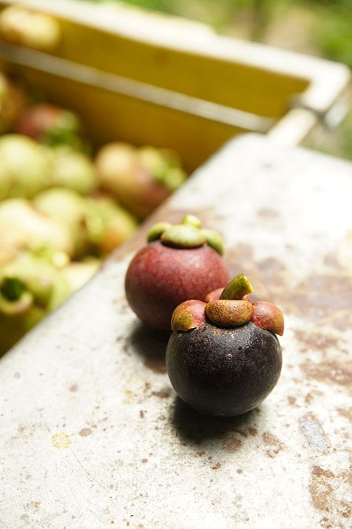 ชุมพรขึ้นชื่อเรื่องผลไม้ ไม่ว่าจะเป็นมังคุด ทุเรียน เงาะ ฯลฯ มาเที่ยวชุมพรครั้งนี้จะพลาดกินผลไม้ได้อย่างไร เราจึงเดินทางมากันที่บ้านหาดยาย อ. หลังสวน ก้อง วธัญญู สอนทวี ทายาทสวนมังคุดแห่งนี้เล่าให้เราฟังว่า มังคุดที่ดีจะต้องเก็บจากต้น มังคุดลูกไหนหล่นพื้นแล้วนั้นคือมังคุดที่ไม่อร่อย ที่นี่เก็บมังคุดในช่วงที่ผิวมังคุดยังไม่ม่วงเต็มที่ “ช่วงที่ผิวมังคุดเริ่มมีสีม่วงแซมเล็กน้อยเหมาะแก่การเก็บเกี่ยวที่สุด เพราะมังคุดจะเก็บไว้ได้นาน กว่าจะเสียและทานไม่ได้” ชายผิวขาวในเสื้อลายสก๊อตแนะนำถึงมังคุดสีเขียวปนม่วงที่ดูแล้วไม่เหมือนมังคุดที่พวกเราคุ้นตานัก