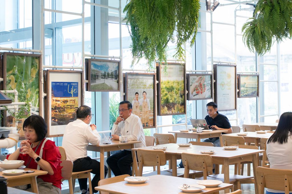 หน้าร้านเป็นเฟรชมาร์เกตจำหน่ายผลผลิตสดๆ จากฟาร์ม เช่น โทมิเมล่อน มันมุราซากิ มะเขือเทศเชอร์รีสายพันธุ์ฮอลแลนด์ ผักสลัดที่ปลูกด้วยน้ำแร่ แยมและน้ำสลัดเมล่อน ตลอดจนผลิตภัณฑ์จากชุมชนต่างๆ เลือกซื้อติดไม้ติดมือกันได้