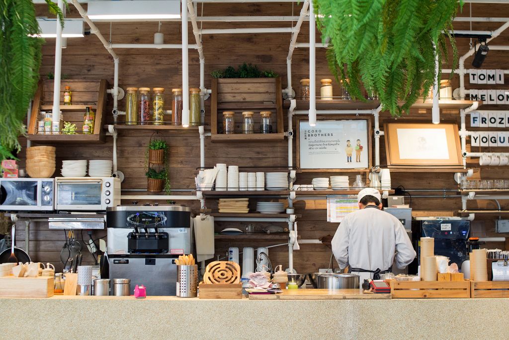บรรยากาศร้านเหมือนยกฟาร์มโคโรฟิลด์มาไว้ใจกลางเมือง ร้านสีขาวสะอาดตา ใช้โครงเหล็กที่ใช้ในการเพาะปลูกมาดัดแปลงตกแต่งโดยรอบ พร้อมสีเขียวสดชื่นของต้นไม้ มีครัวเปิดขนาดใหญ่เป็นจุดดึงดูดให้ลูกค้าได้ชมเชฟปรุงอาหาร