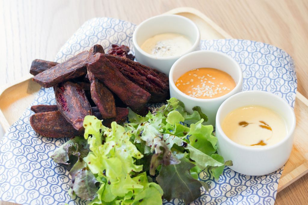 ห้ามพลาดจานโปรดจากเจ้าของฟาร์ม มันมุราซากิทอดเสิร์ฟพร้อมซอสสามรสชาติ เมนูง่ายๆ แต่กินเพลินจนไม่อยากหยุด เพราะเชฟทอดชิ้นมันได้กรอบนอกนุ่มในเคี้ยวอร่อย